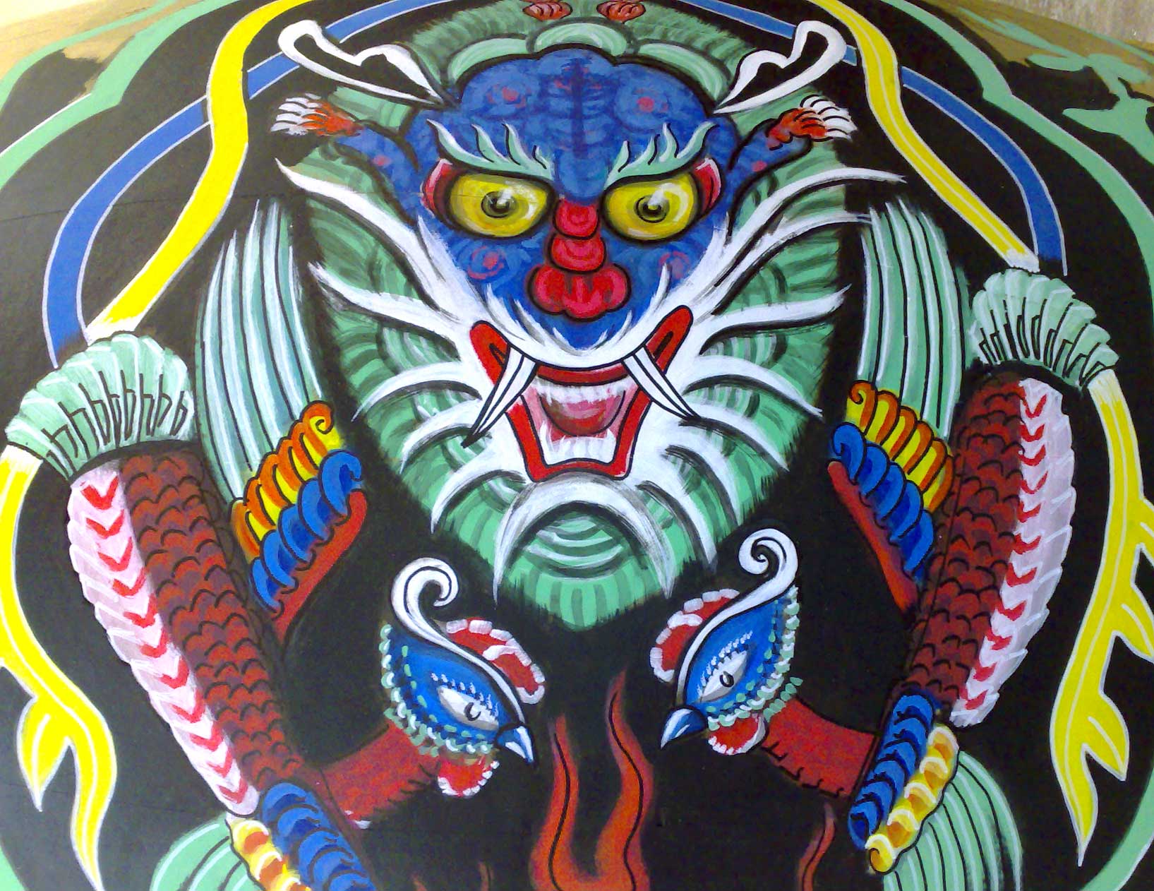 Drachen-Malerei auf chinesischer Trommel für Bühnenshow (vorgegebenes Motiv) -> Rollover... -> klick