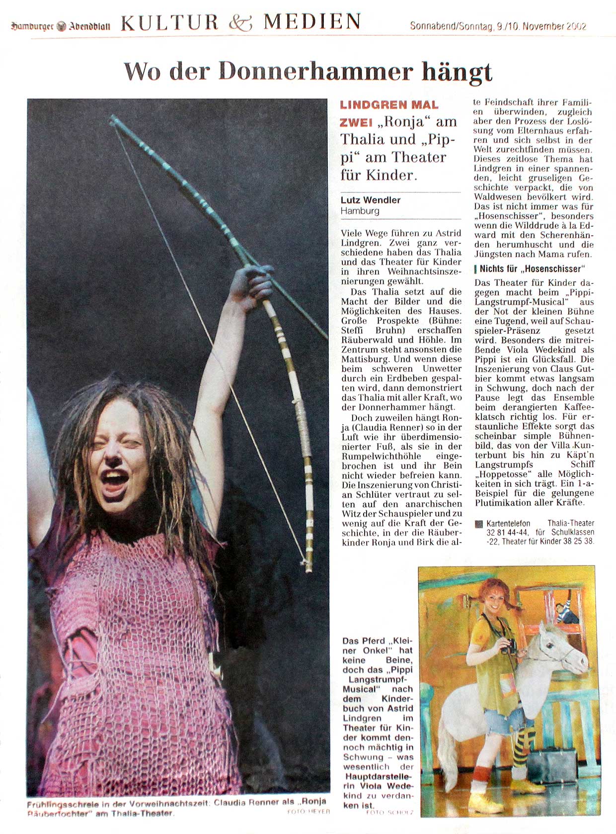 "Pippi Langstrumpf" Hamburger Abendblatt, Nov.´02>