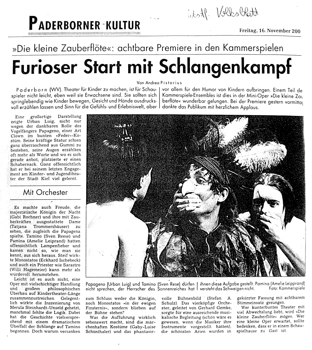 "Die kleine Zauberflöte" Westfälisches Volksblatt, Nov. '00>